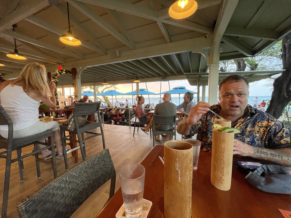 For dinner today I was hanging out and reading at a restaurant beside Magic Sands beach here in Kona-Kailua, Hawaii.