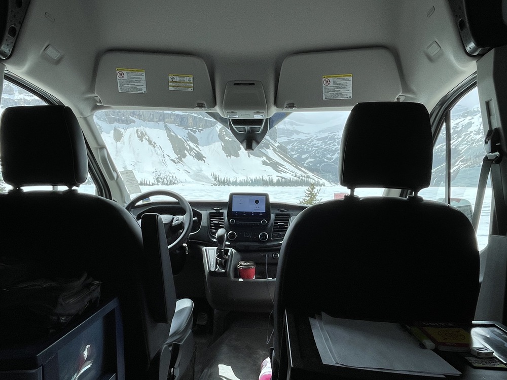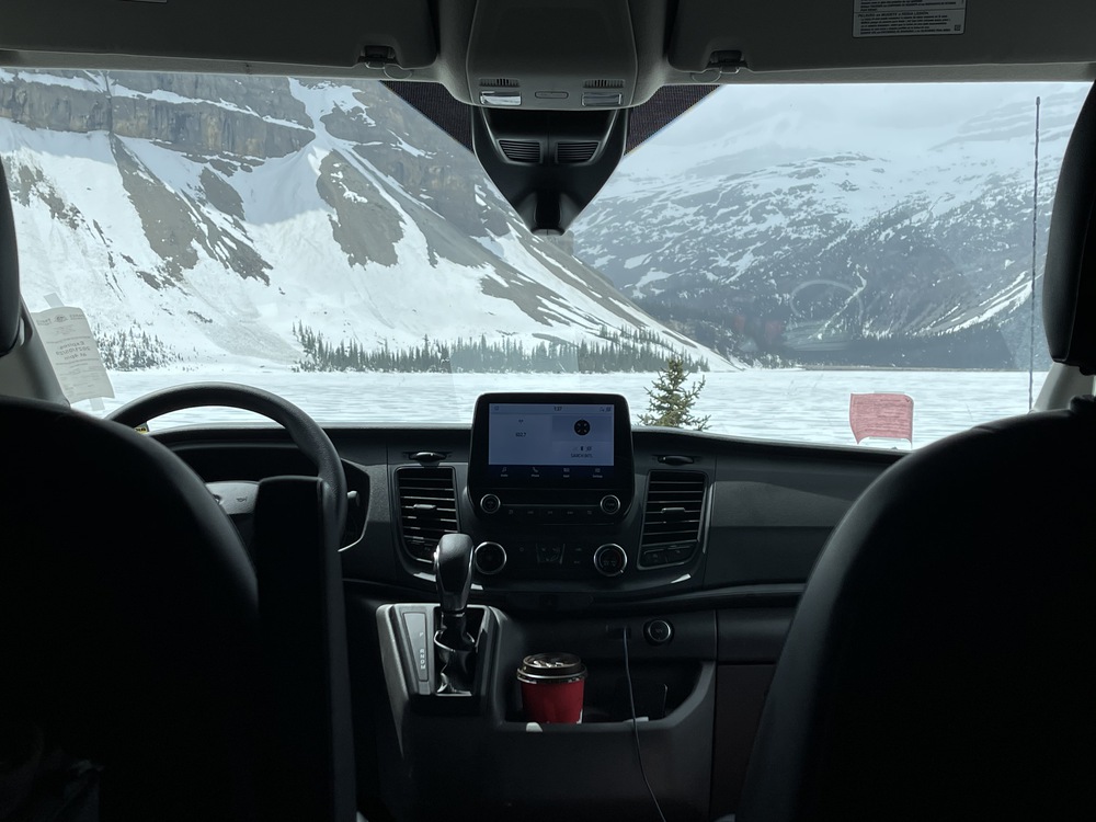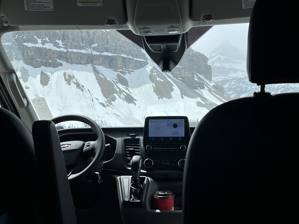I had the feeling of being in a cockpit of sorts with clear views of the mountains and lakes found along the roadsides.