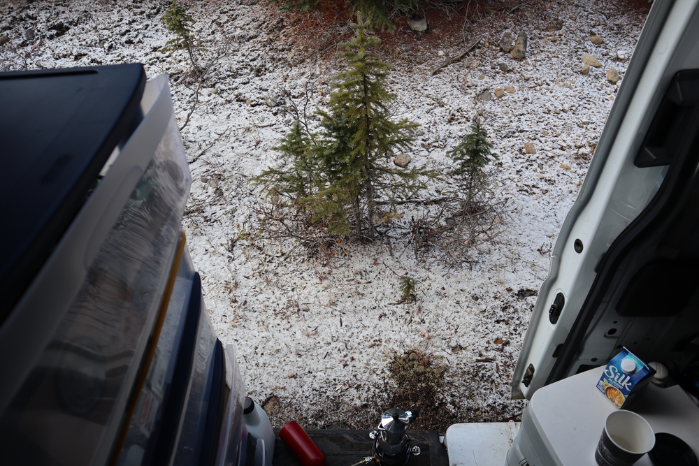 The first few photos are from where I awoke after spending a night just off the park roadway. Soon after, driving southward, I was witnessing the effects of some early light snowfall.